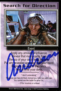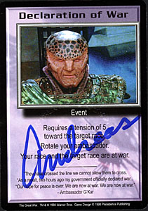 #JC512 Rare Babylon 5 "Justin" Z'ha'dum Card Signed in blue ink. $75.00 embossed Order